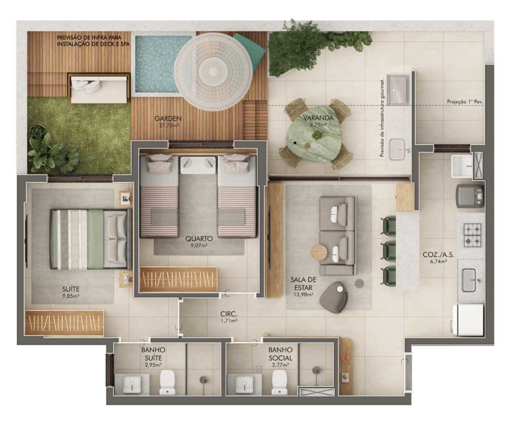 Ambientes integrados, arquitetura sofisticada e acabamentos de excelência criam uma atmosfera perfeita para reunir a família, receber amigos e desacelerar. Dos espaços de lazer aos ambientes de relaxamento, tudo foi desenhado para oferecer conforto, bem-estar e a leveza que só um destino de praia proporciona. Mais que um empreendimento, um refúgio para viver o tempo com calma, elegância e liberdade